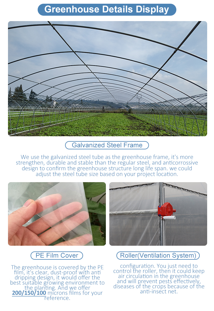 Galvanized Steel Frame Greenhouse Hydroponic System Large Size High Tunnel